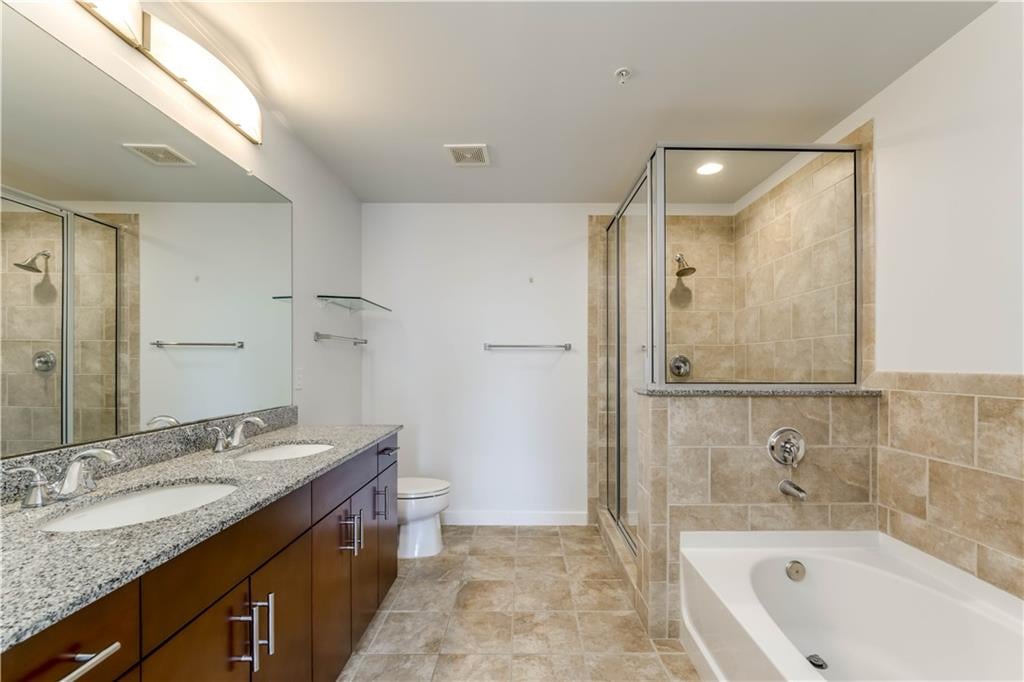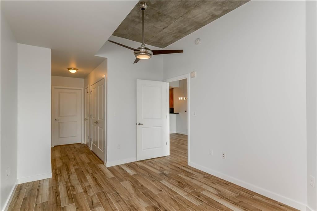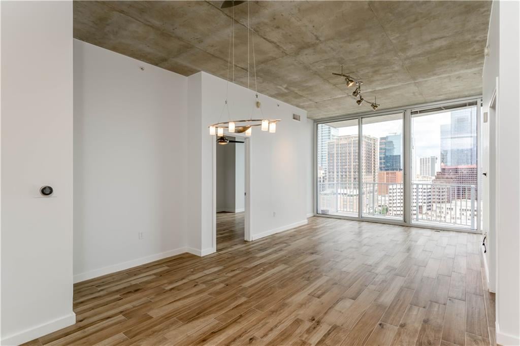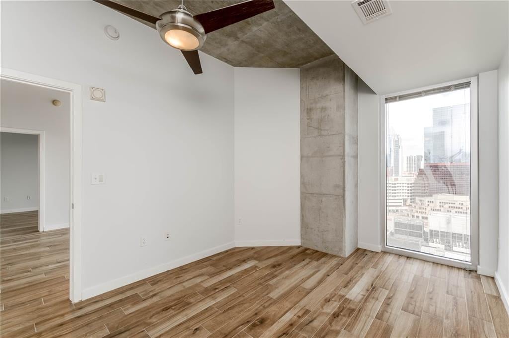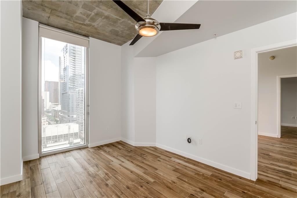 The living area flows seamlessly to a private balcony, offering a front-row seat to Austin’s vibrant skyline and the energy of downtown below. Both bedrooms are generously sized, with the primary suite providing a peaceful retreat after a day in the city. In the primary bathroom, enjoy a walk-in closet, a separate walk-in shower, and a soaking tub, along with dual vanities and ample cabinetry.