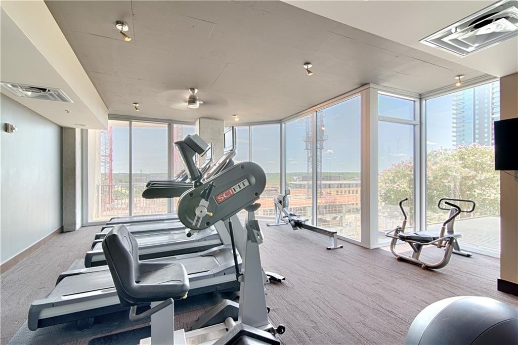 The residence also includes two highly desirable, dedicated parking spaces within the secured garage, an exceptional convenience in downtown Austin.